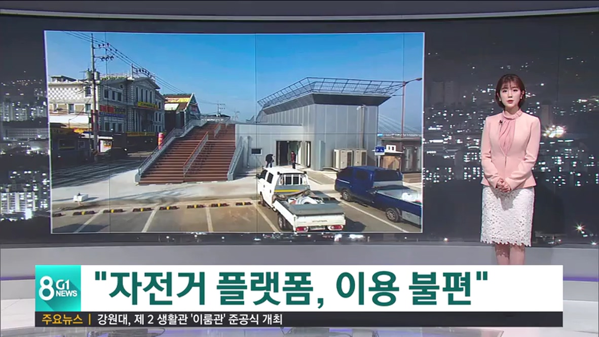 자전거 플랫폼 입구와 인근 자전거 도로가 연결이 안 돼 있기때문입니다.