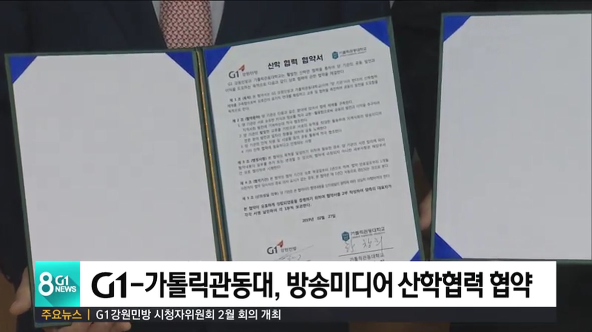 G1강원민방과 가톨릭관동대학교가 양 기관의 방송미디어 분야 발전을 위해 적극 협력하기로 했습니다