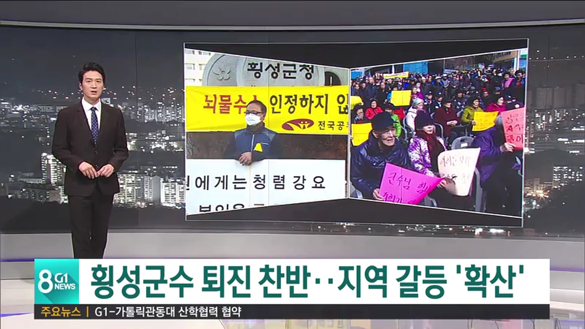 횡성군수의 퇴진 여부를 놓고 찬반 여론이 팽팽하게 맞서면서, 지역 갈등으로까지 비화되고 있습니다.