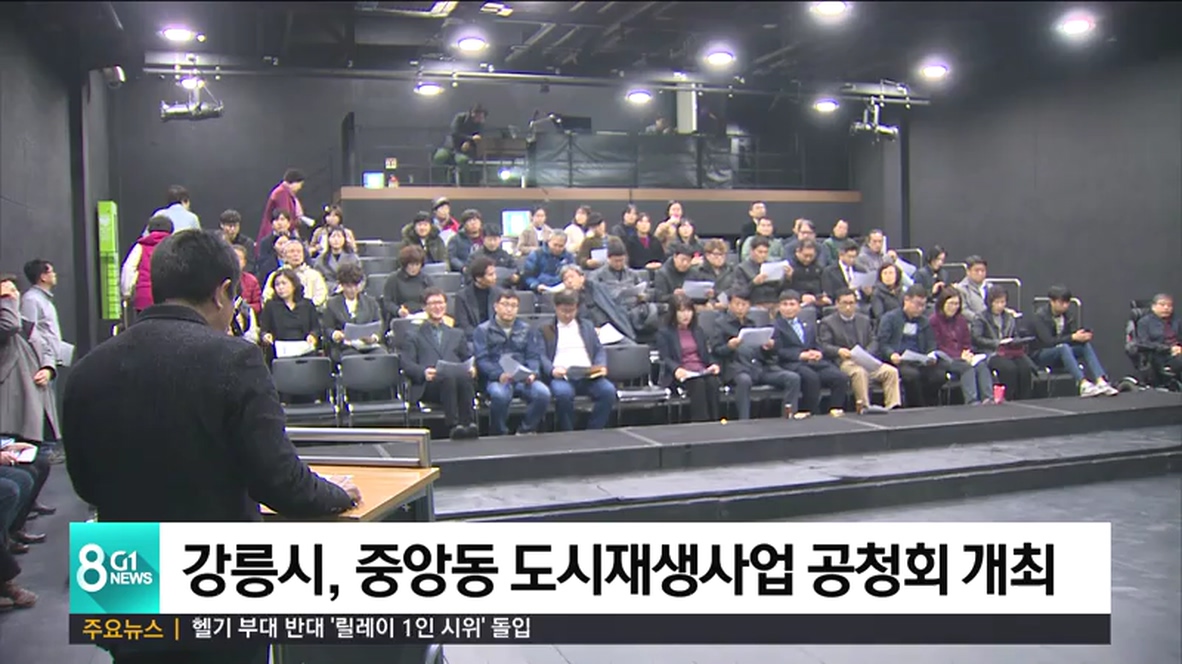 강릉시 중앙동 구 도심지역을 활성화하기 위한 주민 공청회가 오늘 명주동 작은공연장 '단'에서 열렸습니다.