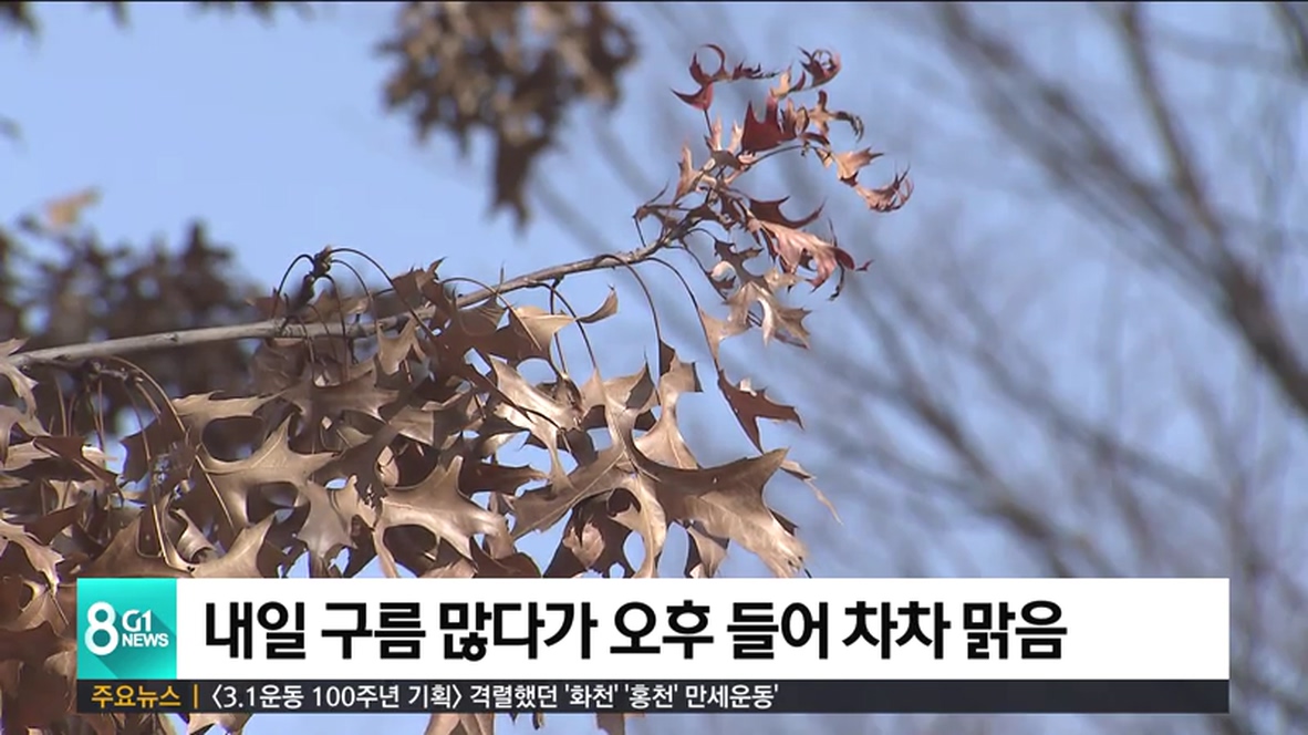 내일 강원도는 구름이 많다가 오후들어 차차 맑겠습니다.