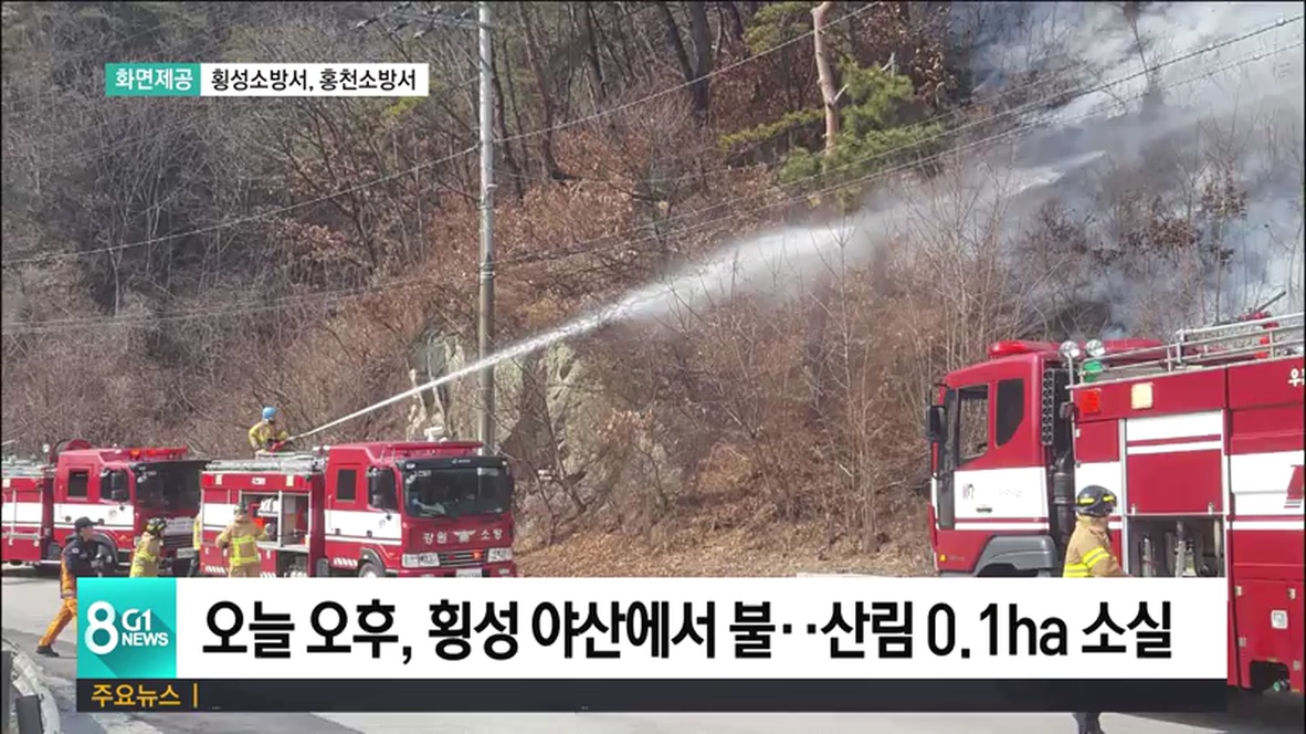 오늘 오후 1시 30분쯤, 횡성군 우천면의 한 야산에서 불이 나, 산림 0.1ha를 태우고, 30여분만에 꺼졌습니다.