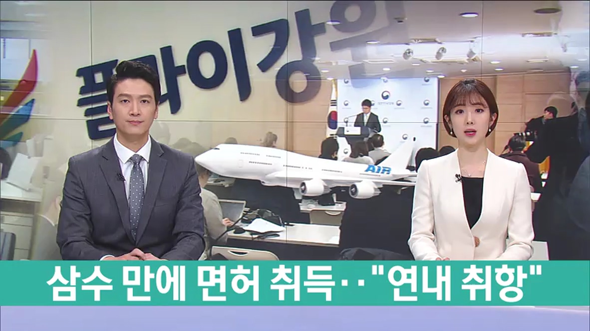 남) 양양 국제공항을 모기지로 하는 민간 저가항공사인 플라이강원이 삼수 만에 면허를 취득했습니다.