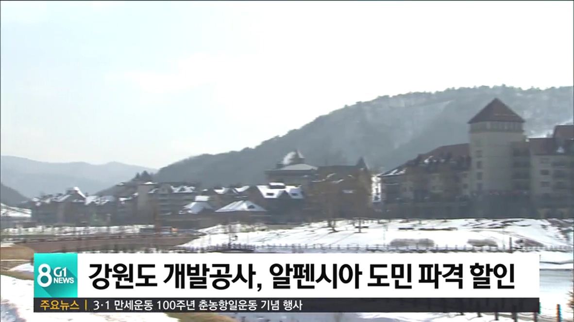 강원도 개발공사가 알펜시아리조트의 콘도와 워터파크 등에 대한 도민 파격 행사를 벌입니다.