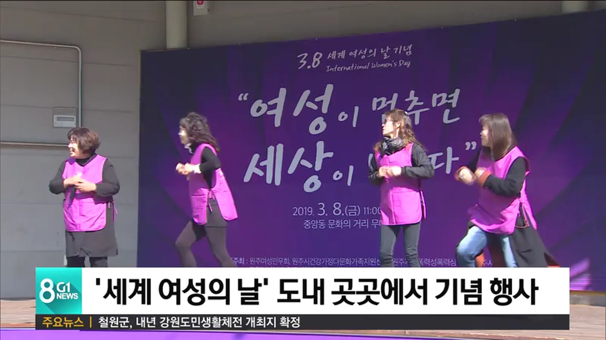 원주에서는 '여성이 멈추면 세상이 멈춘다'는 슬로건으로, 3.8 여성 선언문 낭독과 여성 차별·혐오 반대 퍼포먼스 등이 진행됐습니다.