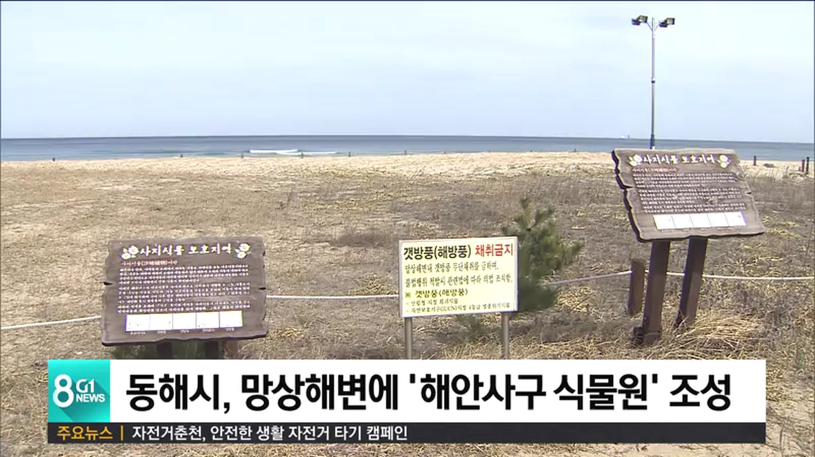 동해시는 갯방풍과 갯완두, 갯메꽃 등 약 30여 종의 해안 식물이 자생하고 있는 망상해변에 사업비 1억 6천만원을 투입해, 동해안 최초로 '해안사구 식물원'을 만들겠다고 밝혔습니다.