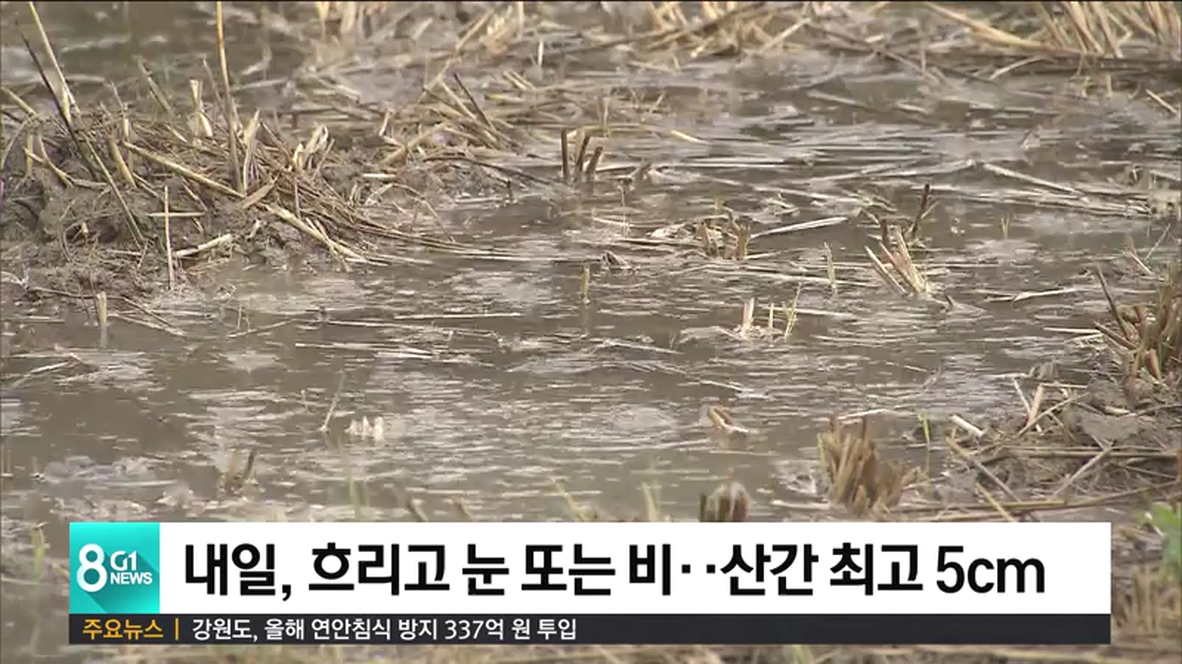 내일 강원도는 대체로 흐리고, 낮부터 비나 눈이 내리겠습니다.
