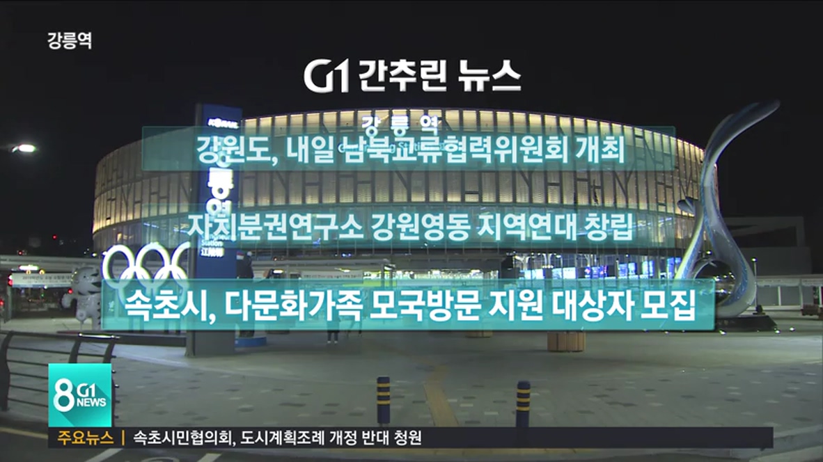 강원도는 내일 신관 소회의실에서 대북사업 관련 단체와 사회단체, 학계와 언론계 대표들이 참여하는 '2019년 강원도 남북교류협력위원회'를 개최합니다.