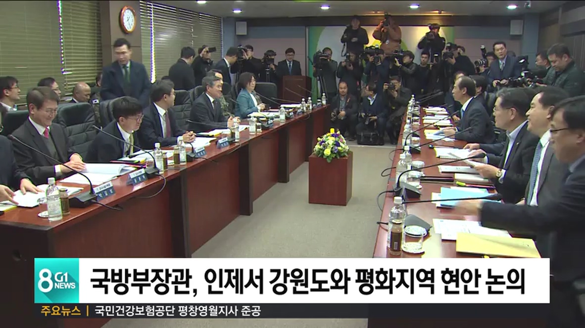 정경두 국방부장관이 오늘 인제군을 방문해, 최문순 강원도지사와 인제와 양구 등 5개 평화지역 관계자들과 함께 평화지역 현안에 대해 논의했습니다.