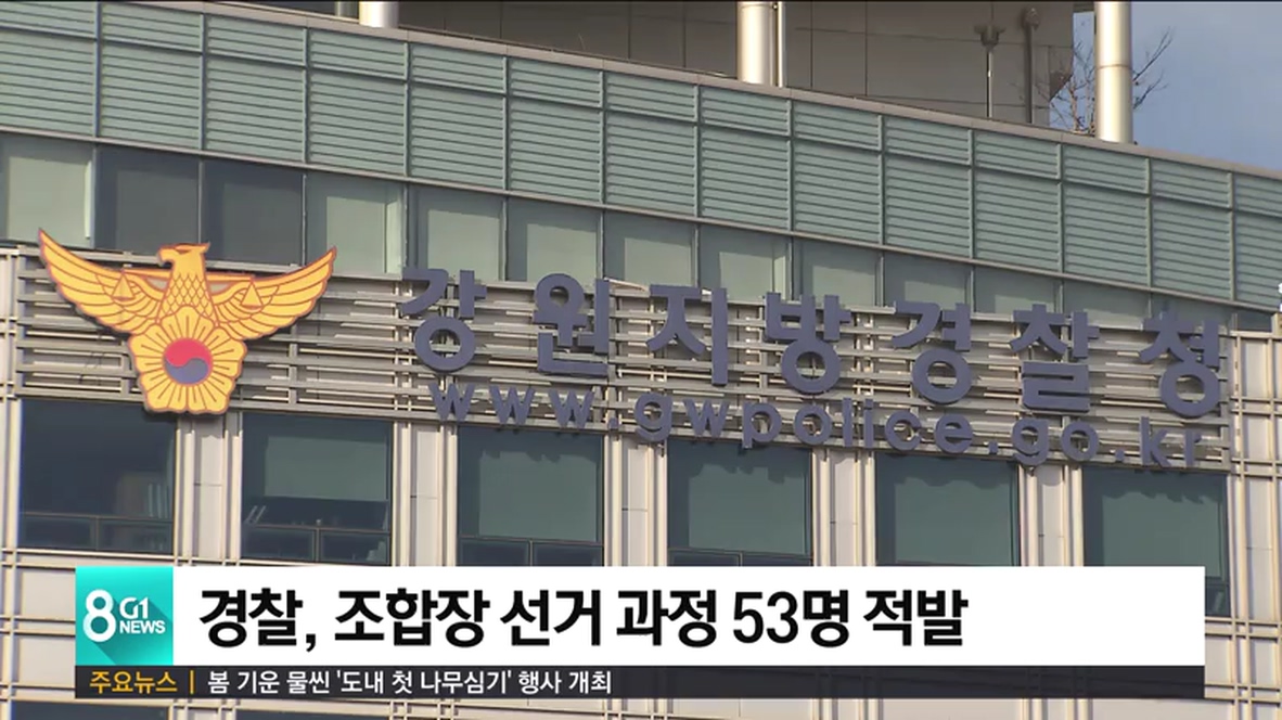 강원지방경찰청에 따르면, 제2회 전국 동시 조합장 선거와 관련해 부정 선거운동 사례 50건에 53명이 적발됐으며,
