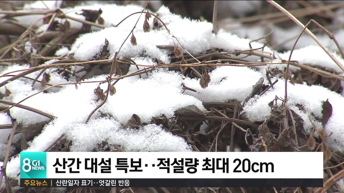 특히 강원 남부 산지에 많게는 20cm 이상 눈이 쌓일 것으로 예상됩니다.