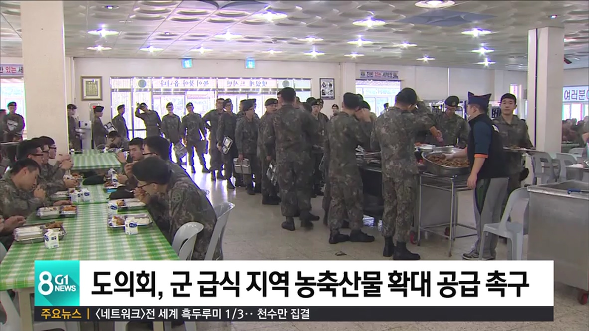도의회 농림수산위원회는 '지역 농축수산물 군부대 급식 확대 촉구 건의안'을 채택해 청와대와 국방부, 농림축산식품부, 국회에 발송했습니다.
