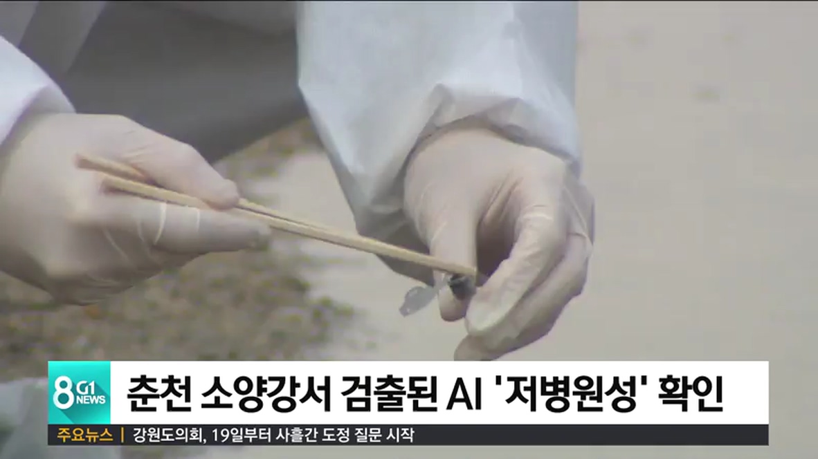 지난 11일 춘천 소양강에서 채취한 야생조류 분변에 대한 환경부의 정밀 검사 결과, 저병원성으로 최종 확진됐습니다.
