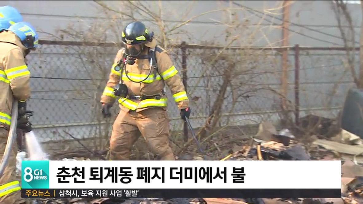 오후, 3시 42분쯤, 춘천시 퇴계동의 한 종이박스 공장 인근에 있던 폐지 더미에서 불이 났습니다.