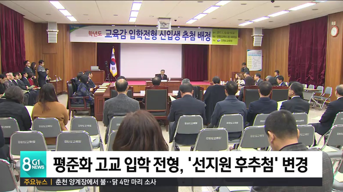 강원도교육청이 제9기 강원교육발전자문위원회를 열고, 도내 평준화 지역 고등학교 입학 전형제도 개선안을 심의했습니다.
