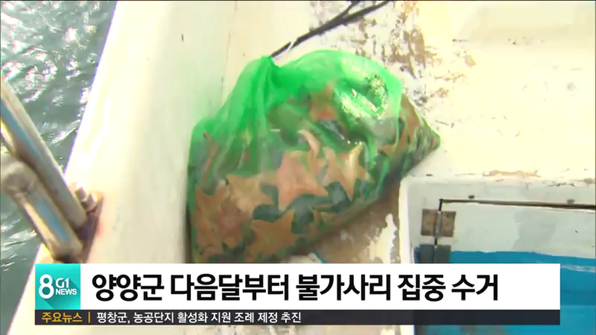 양양군은 패류와 해조류를 무차별 포식해 어민들에게 피해를 주는 불가사리를 다음달부터 7월까지 집중 수거한다고 밝혔습니다.