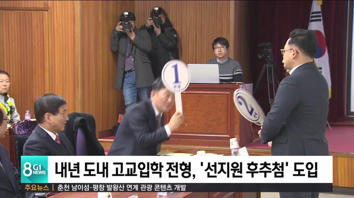 내년도 도내 고교 입학전형은 평준화 지역에는 '선지원 후추첨' 학교 배정방식이 도입되고, 춘천 성수여고가 평준화고에 편입됩니다.