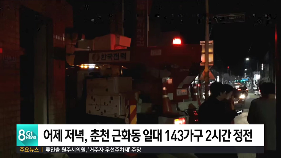 춘천서 고압선 끊어져 143가구 2시간 정전