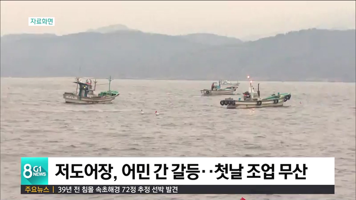 동해안 최북단 고성 저도어장에서의 올해 첫 조업이 어장 출어자격을 둘러싼 어업인간의 마찰로 무산됐습니다.