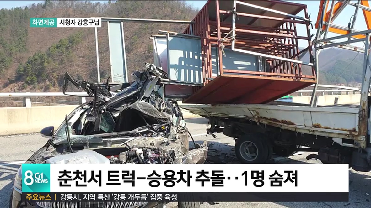 춘천서 승용차-2.5톤 트럭 추돌..1명 숨져