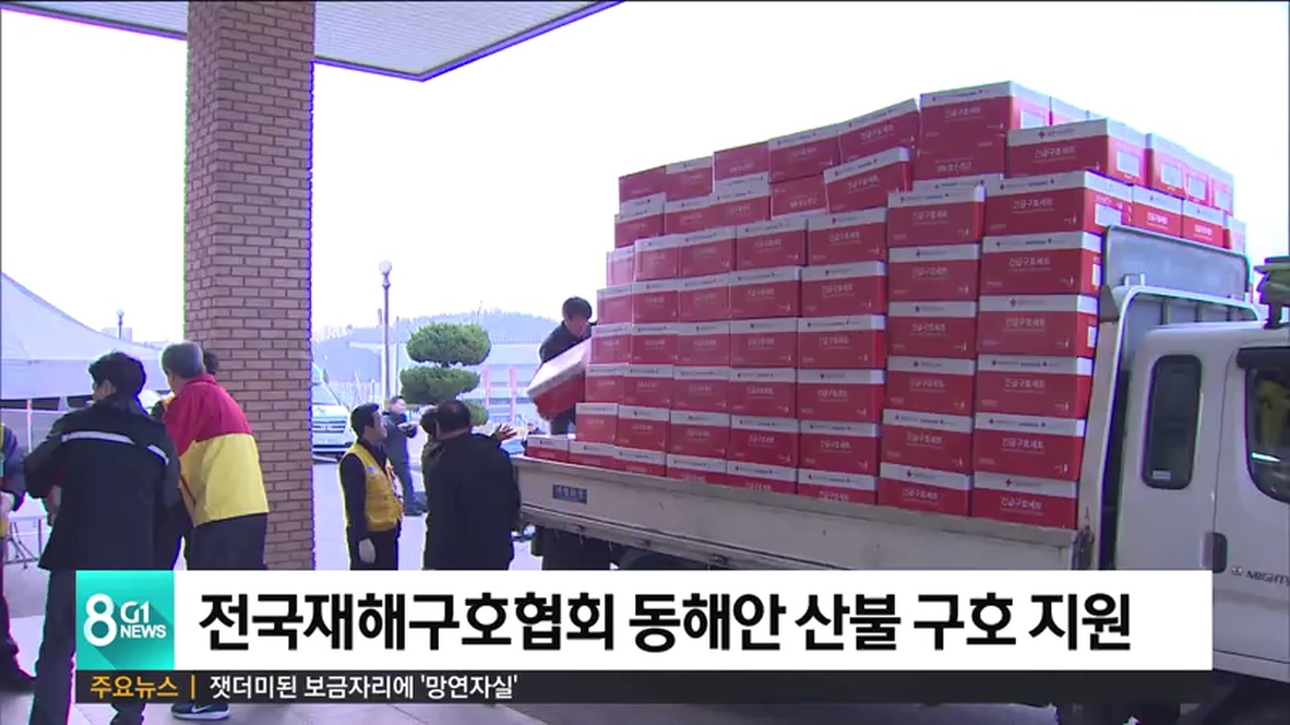 동해안 산불피해 이재민을 돕기 위한 전국 곳곳에서의 구호 손길도 빨라지고 있습니다.