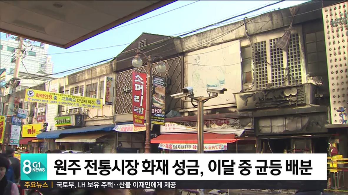 원주시는 화재 이후 각 기관과 단체 등으로부터 받은 성금 1억 천 930만원에 대해, 이달 안으로 행정절차를 거쳐, 피해 상인들에게 계좌이체 방식으로 전달하겠다고 밝혔습니다.