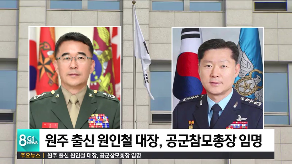 정부는 원주 출신으로 공사 32기인 원인철 합참차장을 공군참모총장에, 홍천 출신으로 해사 40기인 이승도 합참 국방전비태세검열단장을 해병대사령관으로 각각 임명했습니다.