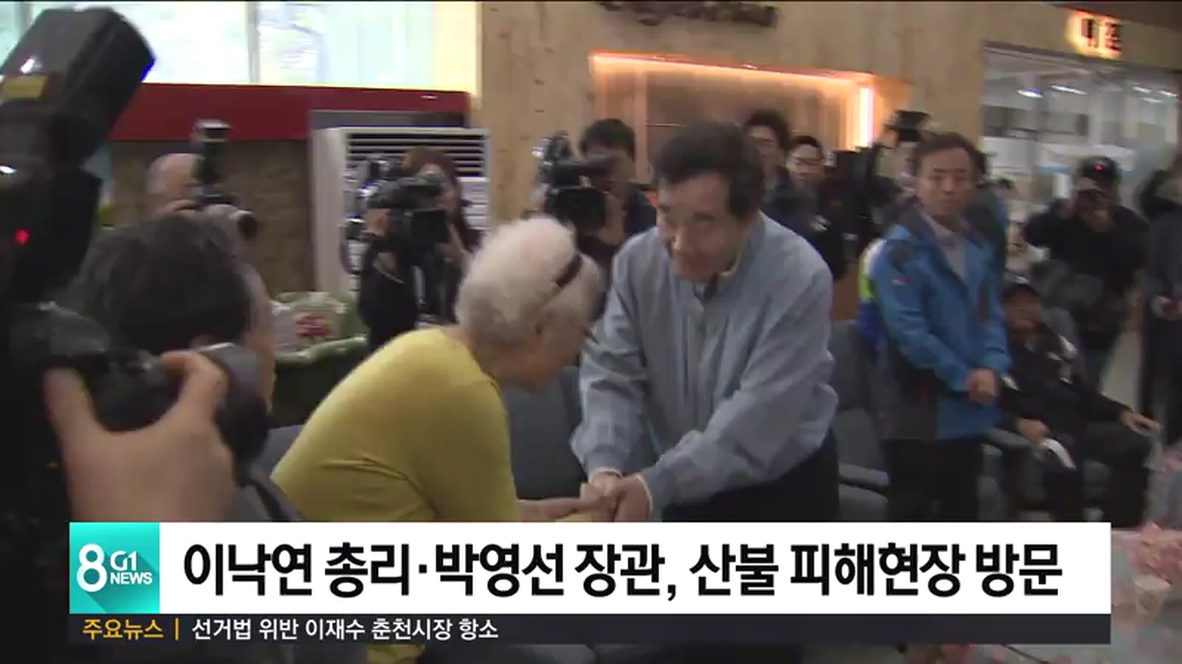 이 총리는 오늘 정부서울청사에서 열린 강원도 산불 관계 장관회의를 마치고, 산불 피해가 심했던 속초 장천마을을 찾아 이재민들을 위로하고, 속초소방서를 방문해 산불 진화에 투입됐던 소방대원들을 격려했습니다.