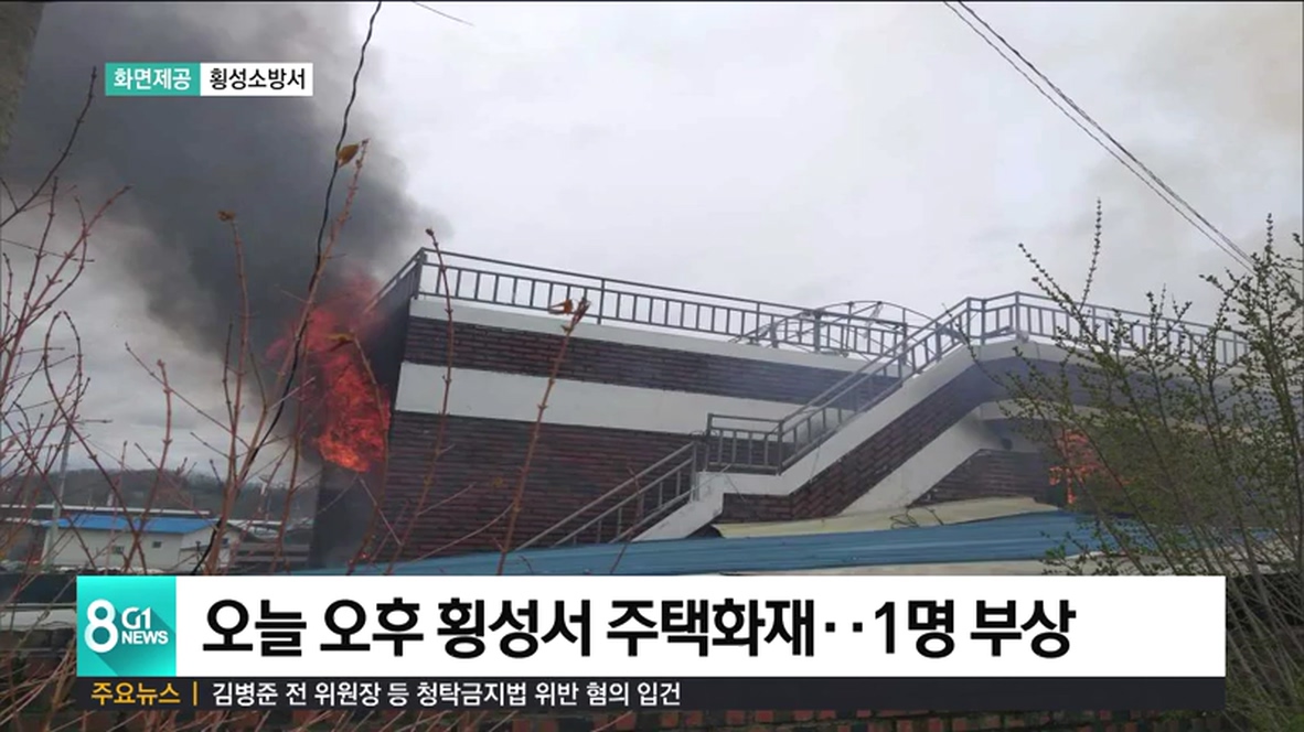 오늘 오후, 횡성서 주택화재.. 1명 부상