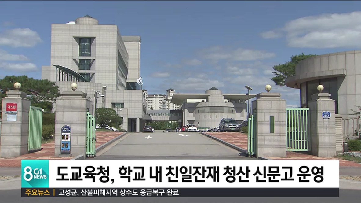 강원도교육청은 교훈과 교가, 조형물, 서식, 학교 문화 등 친일 잔재를 제보받기 위한 신문고를 홈페이지에 운영한다고 밝혔습니다.