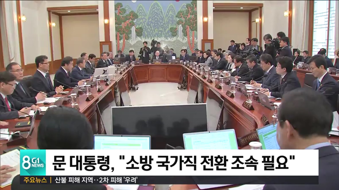 문 대통령은 어제(9일) 열린 국무회의에서 "소방공무원의 국가직 전환은 처우 개선뿐만 아니라 인력과 장비 등에 대한 지역 간 격차를 해소해 재난에 효과적으로 대응하기 위한 것"이라며,