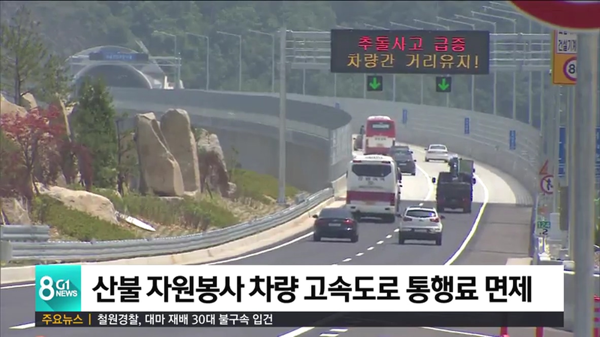 한국도로공사는 강원도 산불 피해복구를 위해 방문하는 자원봉사 차량에 대해 고속도로 통행료를 면제합니다.