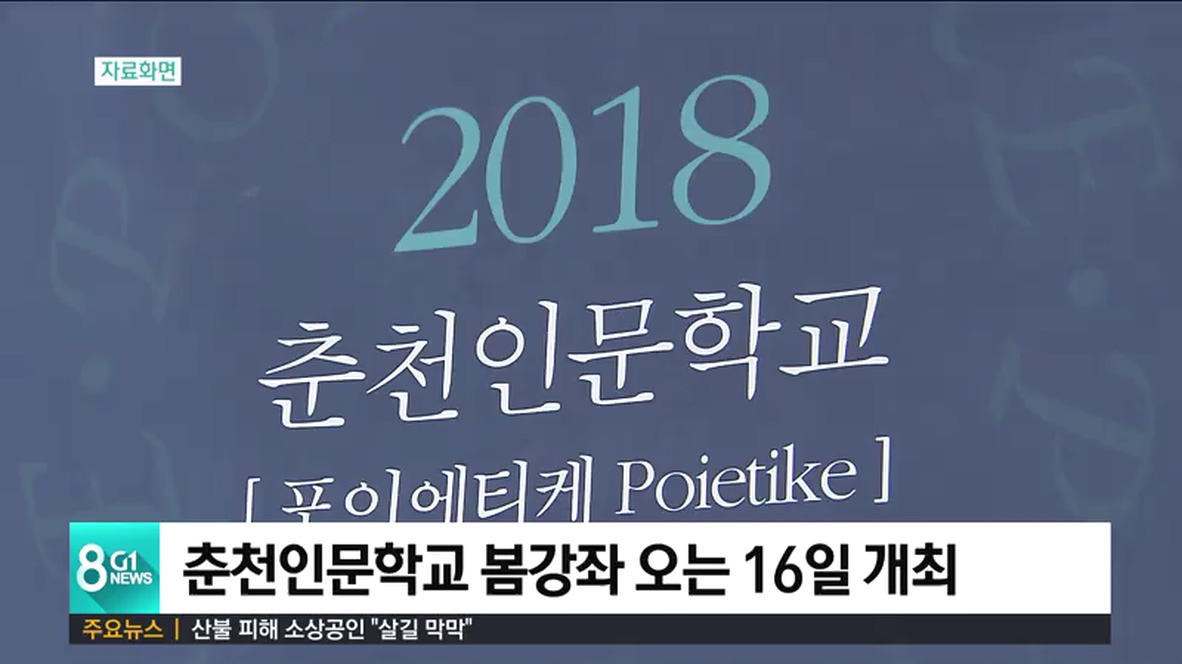 사회 각계 전문가를 초청해 사회 문제와 인생에 대한 폭넓은 시각을 공유하기 위한 춘천인문학교 '포이에티케' 4월 강좌가 오는 16일, G1 강원민방 강당에서 열립니다.