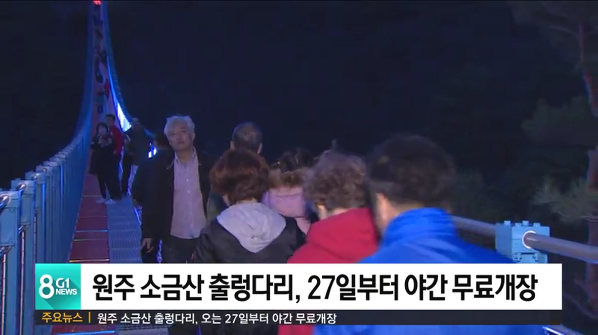 원주시는 오는 27일부터 다음달 12일까지 소금산 출렁다리를 야간에도 개장합니다.