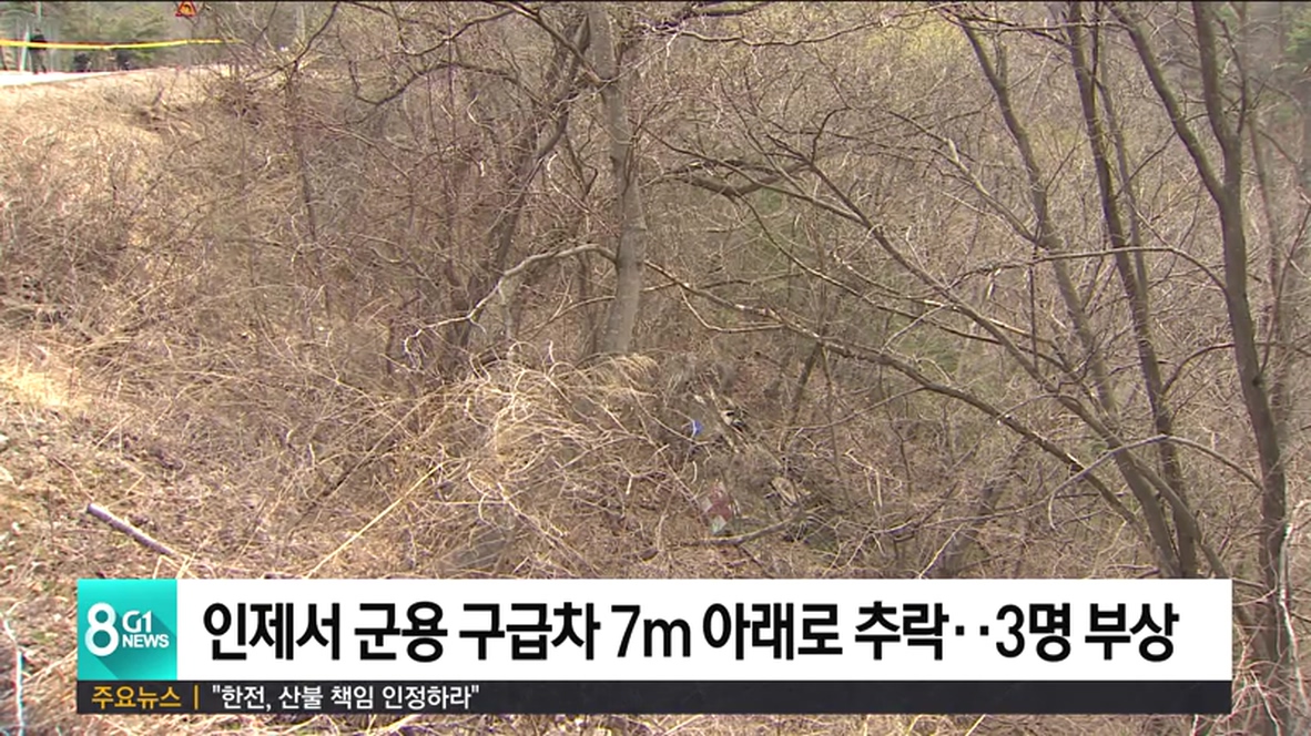 인제서 군용 구급차 7m 아래로 추락..3명 부상