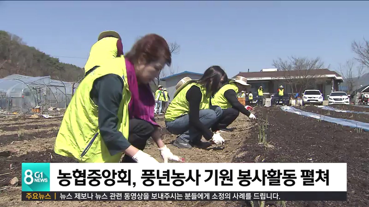 농협중앙회 강원지역본부는 오늘(17일) 농가의 풍년을 기원하는 농촌일손 돕기 봉사활동을 벌였습니다.