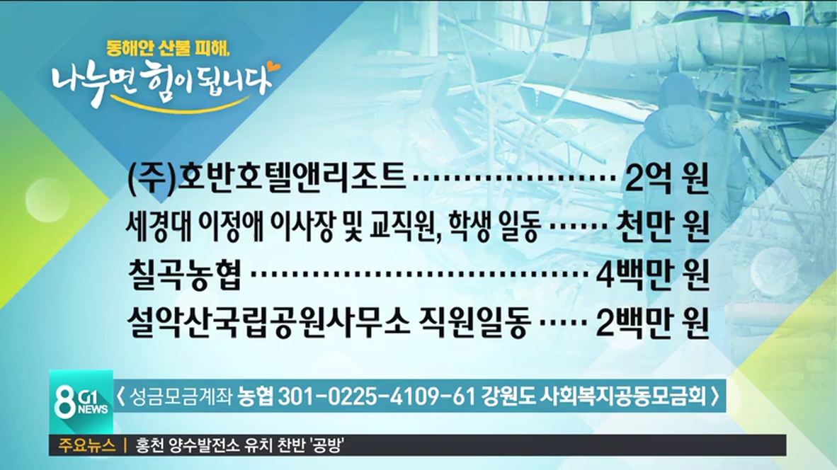 <성금 기탁자> 동해안 산불피해, 나누면 힘이 됩니다