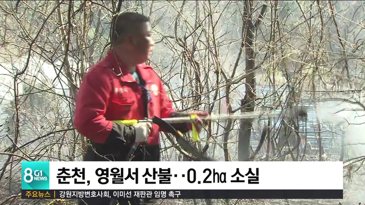 앞서, 오후 1시 50분쯤, 영월군 영월읍 삼옥리의 한 야산에서 불이 나 산림 0.2ha를 태우고 50여분만에 꺼졌고, 불을 끄기 위해, 헬기 2대가 투입됐습니다.