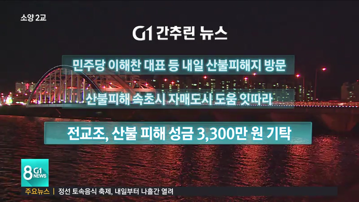 속초시는 산불피해를 입은 이재민들을 돕기위해 자매도시인 전북 정읍시와 경기 오산시, 일본 돗토리현 요나고시, 중국 지린성 훈춘시에서 위로의 뜻을 담은 서한문과 구호물품을 잇따라 보내오고 있다고 밝혔습니다.