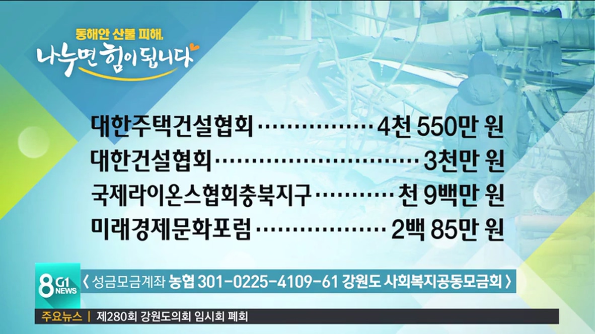이어서, 동해안 산불 피해 복구와 이재민을 돕기 위한 성금을 보내주신 분들입니다.