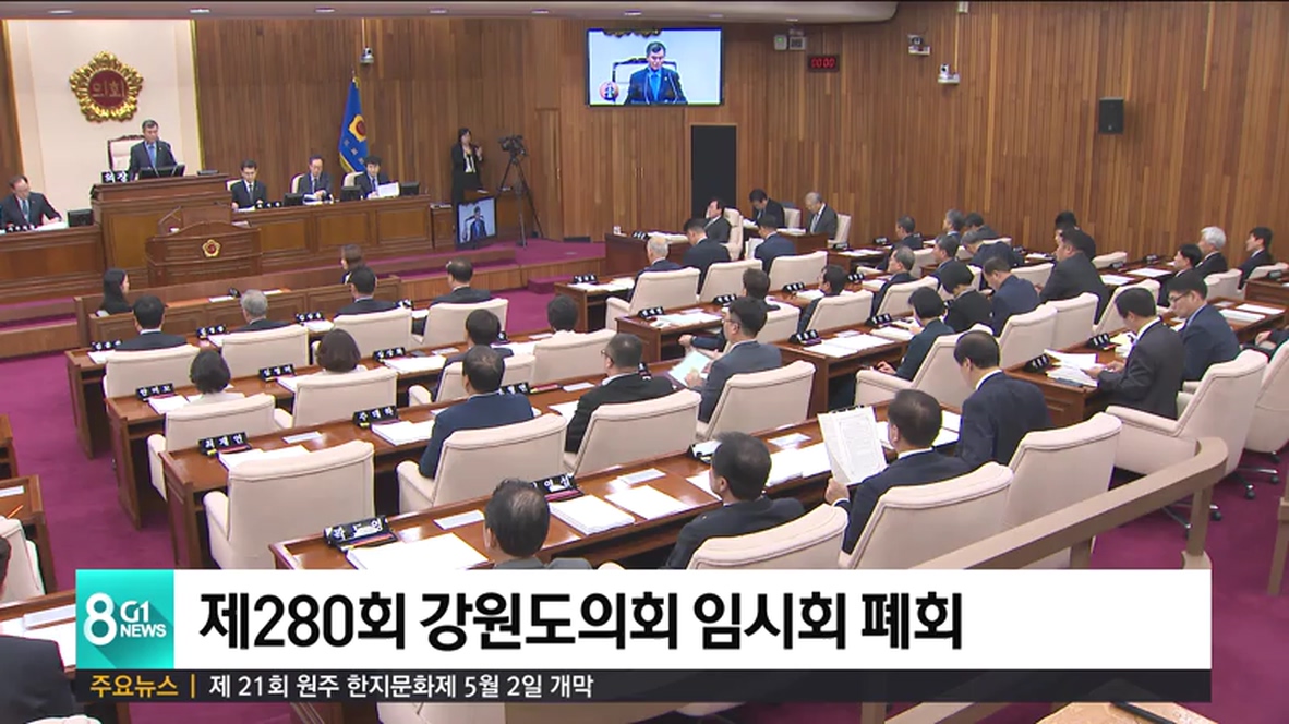 강원도의회 제280회 임시회가 보름간의 일정을 마치고 오늘 폐회했습니다.