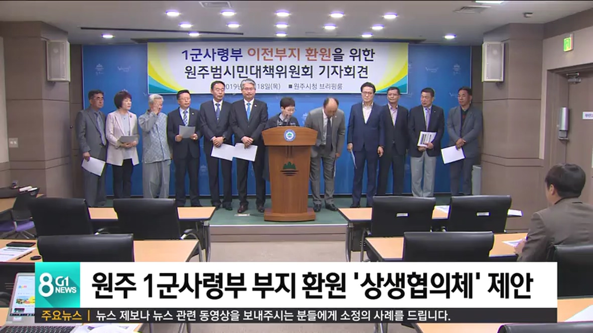 대책위는 오늘 원주시청 브리핑룸에서 기자회견을 열고, "최근 국방부가 제시한 일부 부지 환원 계획에 대해 상생 협의체를 구성해 논의하고, 조만간 이를 협의할 간담회를 개최할 것을 제안했습니다.