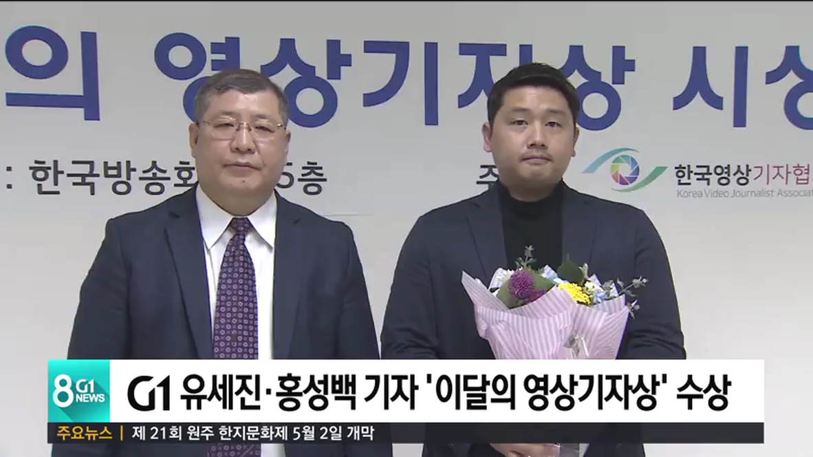 G1 강원민방의 '폐기물 된 물고기 아파트' 보도가 이달의 영상기자상을 수상했습니다.