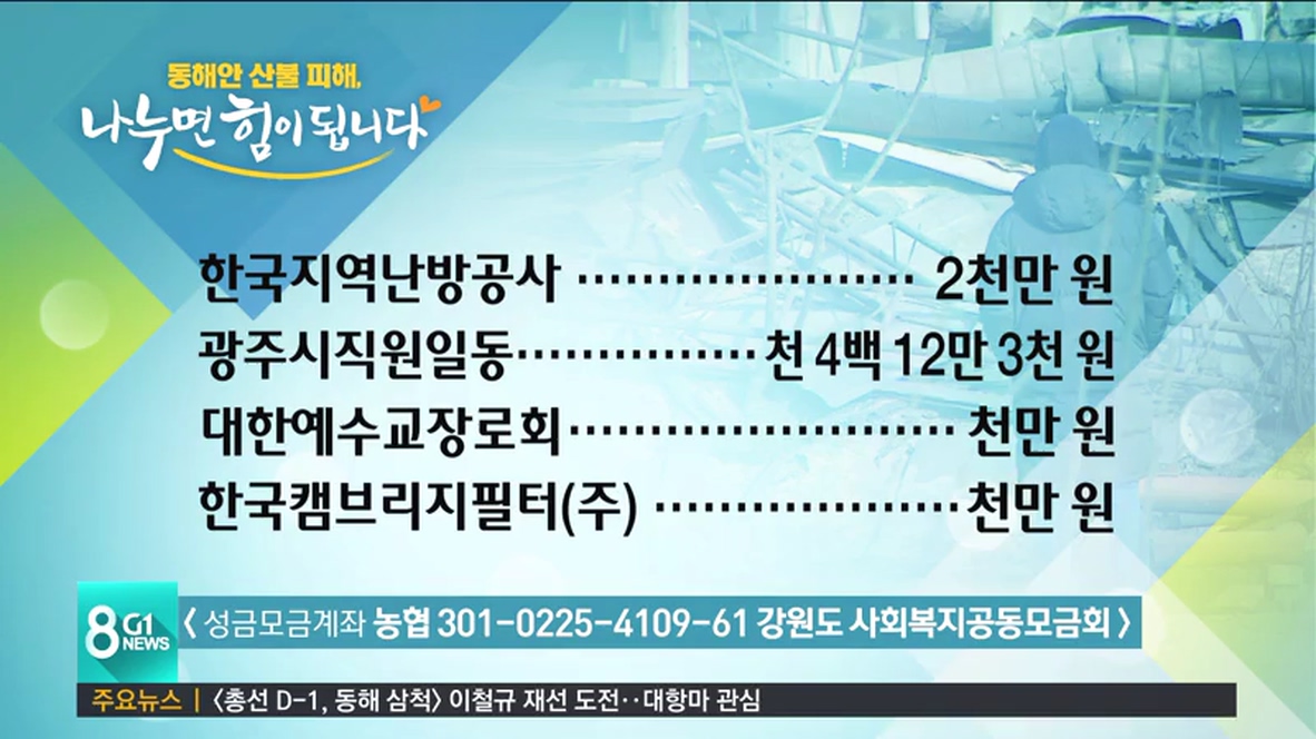 <성금 기탁자> 동해안 산불피해, 나누면 힘이 됩니다