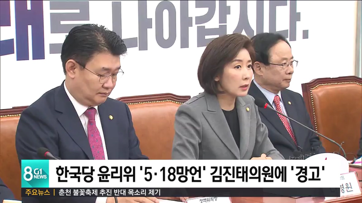 자유한국당은 서울 영등포 당사에서 중앙윤리위원회 전체회의를 열고, '5·18 민주화운동 관련 망언'을 한 김진태 의원에게 경고를, 김순례 최고위원에게는 당원권 정지 3개월을 결정했습니다.