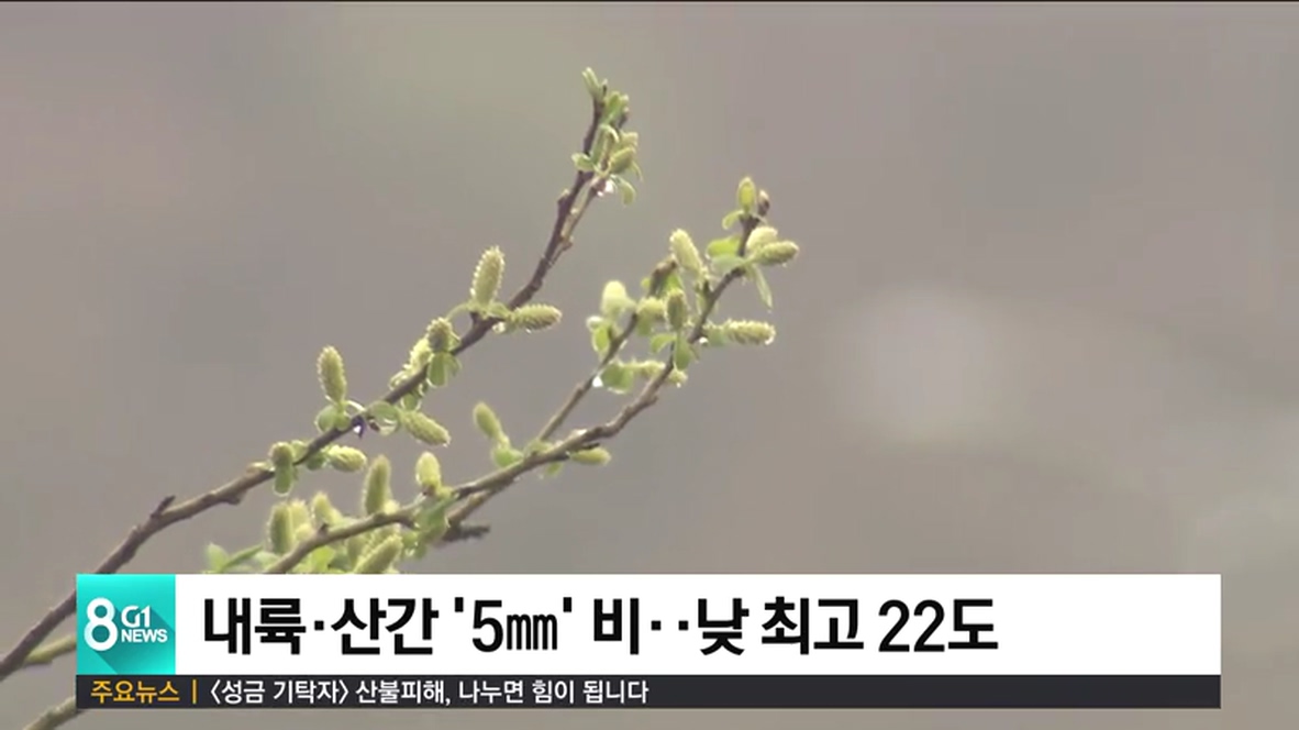 내륙.산간 '5mm' 비..낮 최고 22도