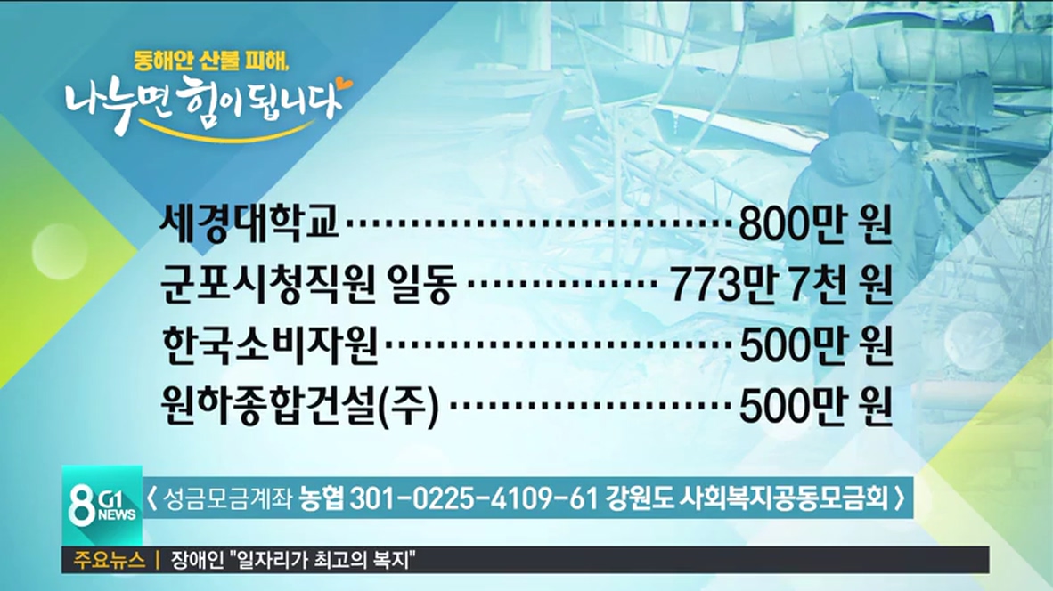 이어서, 동해안 산불 피해 복구와 이재민을 돕기 위한 성금을 보내주신 분들입니다.