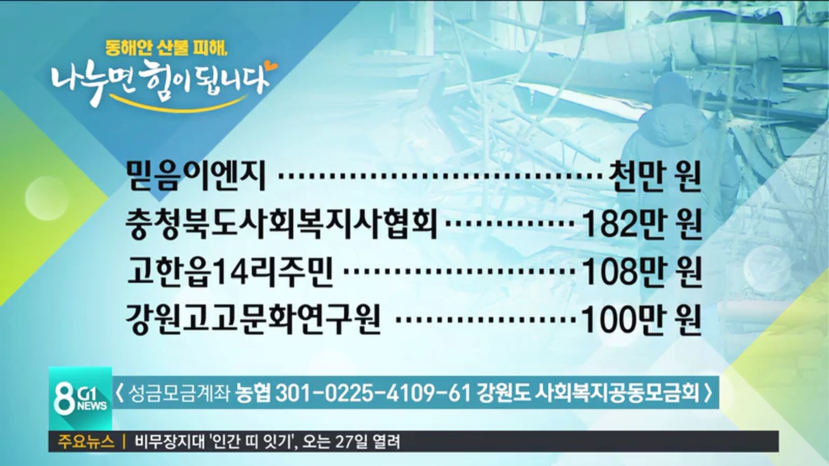 이어서, 동해안 산불 피해 복구와 이재민을 돕기 위한 성금을 보내주신 분들입니다.