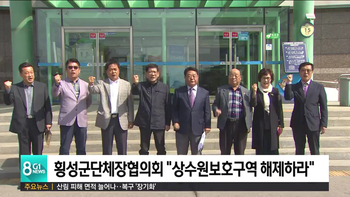 횡성군 각급단체장협의회는 오늘 횡성군청 앞에서 원주 상수원보호구역 해제를 촉구하는 성명서를 발표했습니다.