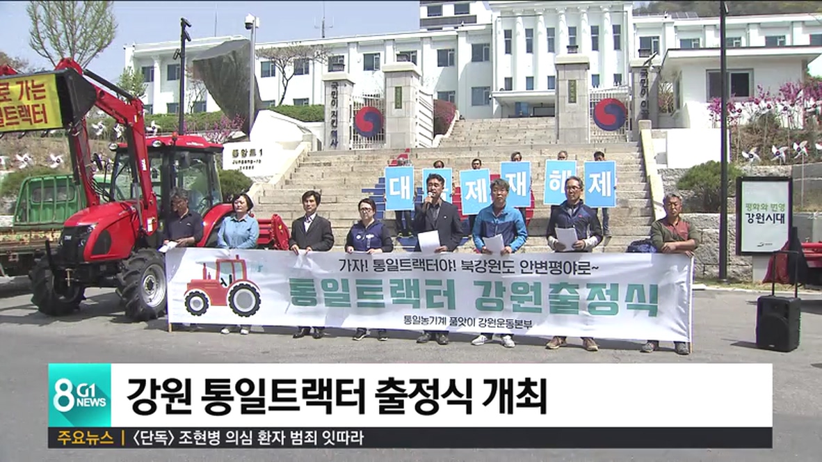 통일농기계품앗이 강원운동본부는 오늘(22일) 강원도청 앞에서 통일 트랙터 출정식을 가졌습니다.